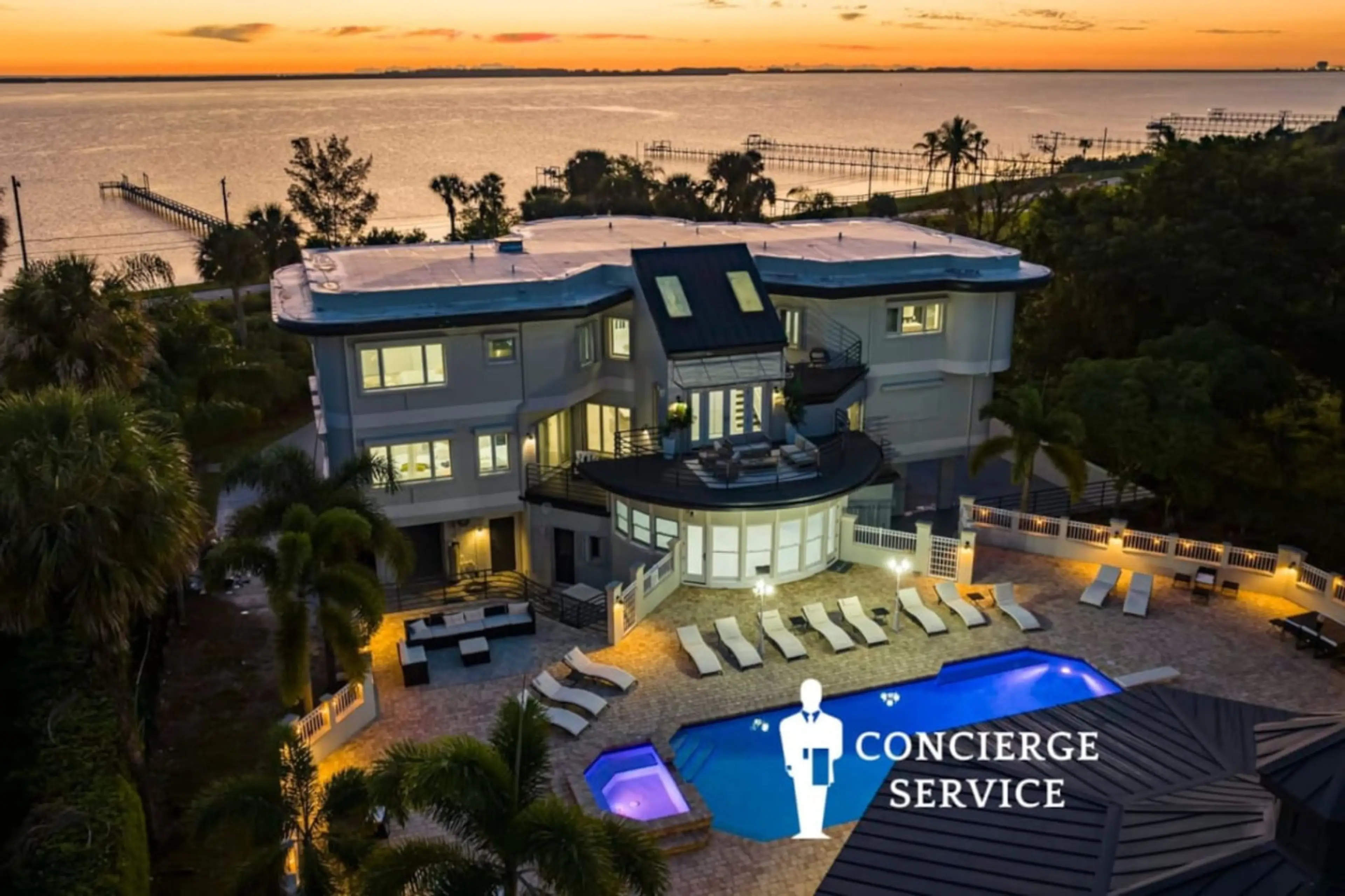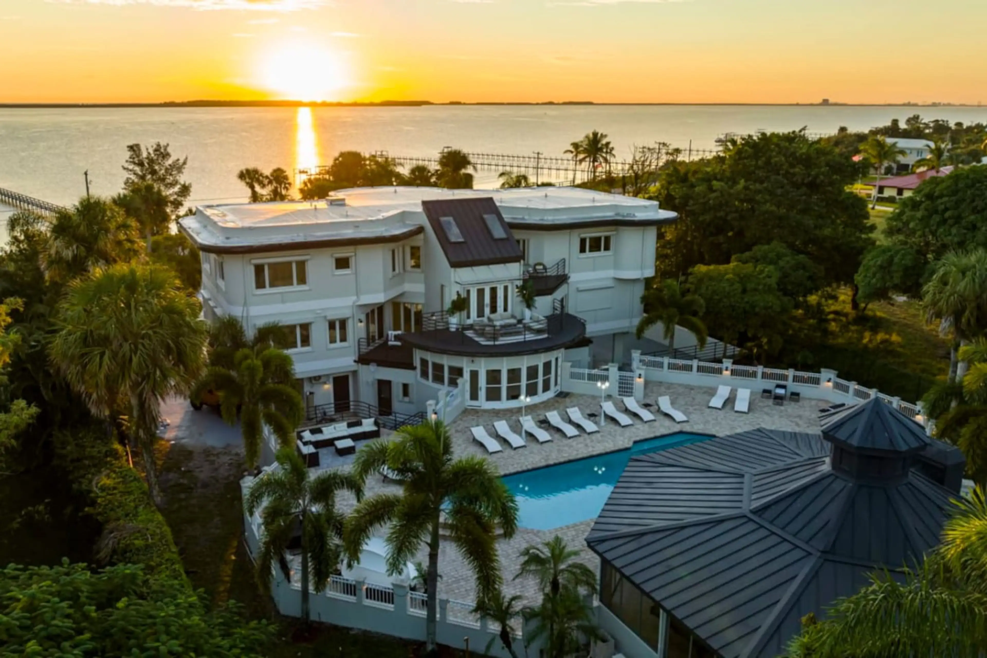 This sprawling 9000 SF waterfront estate is perfect for large groups seeking a luxurious Florida getaway. Enjoy a private pool, boat dock, clay tennis court, home theater, game room, and stunning river views. Located in Fort Pierce, a charming east coast city with attractions like the National Navy ...